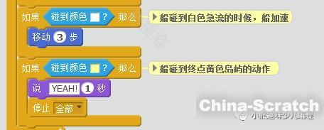 (5)定義小船加速和達到終點的程序:同樣根據顏色進行終點判斷和遇到急流加速的程序: